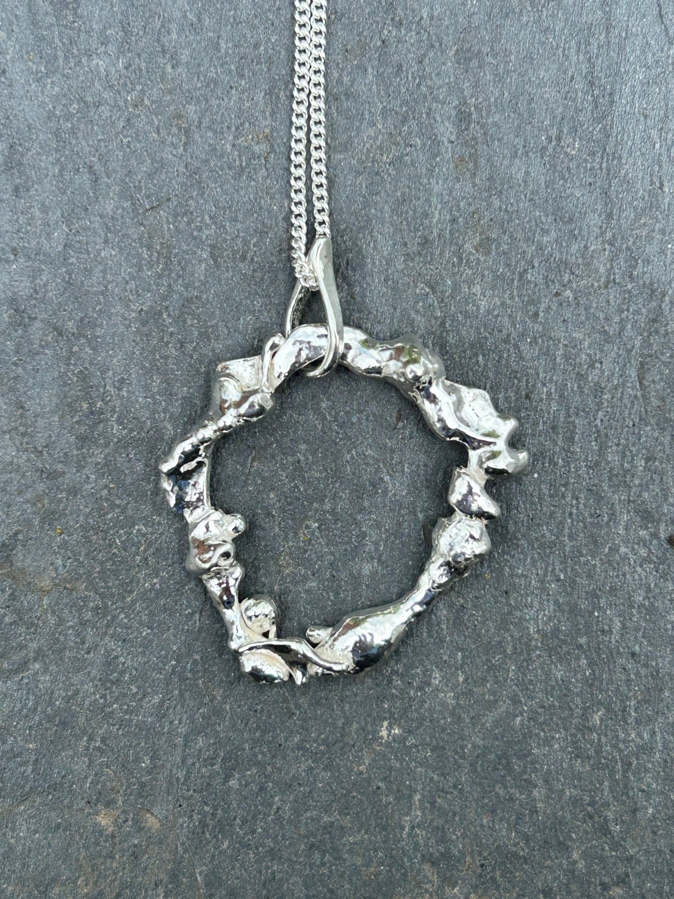 This pendant is made from 100% recycled Sterling Silver, molten and shaped by hand to represent wild berries
