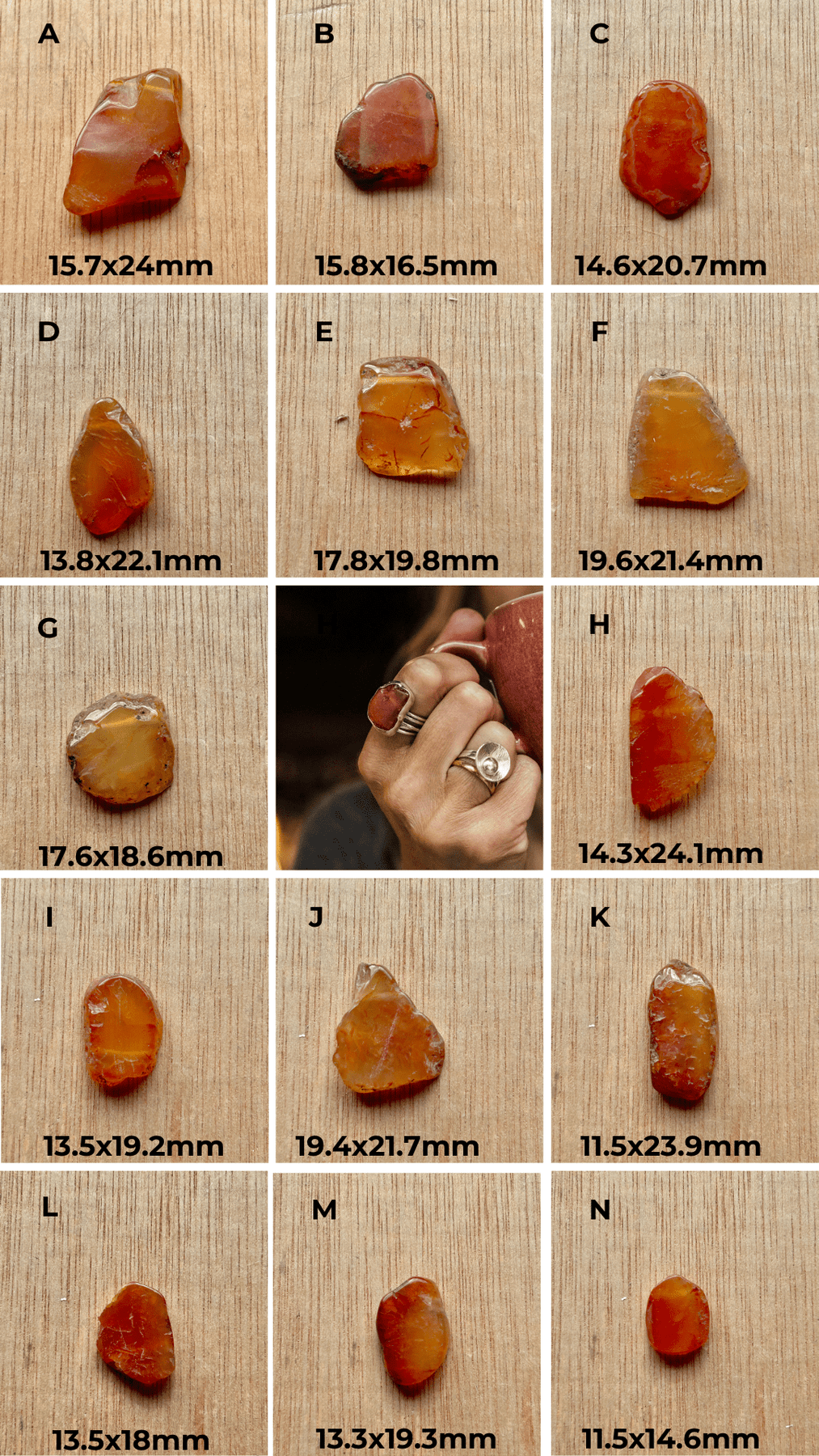 Please check the stone size on your finger with a measuring tape to make sure you're getting a stone that suits your hand! I can trim the stones if required.