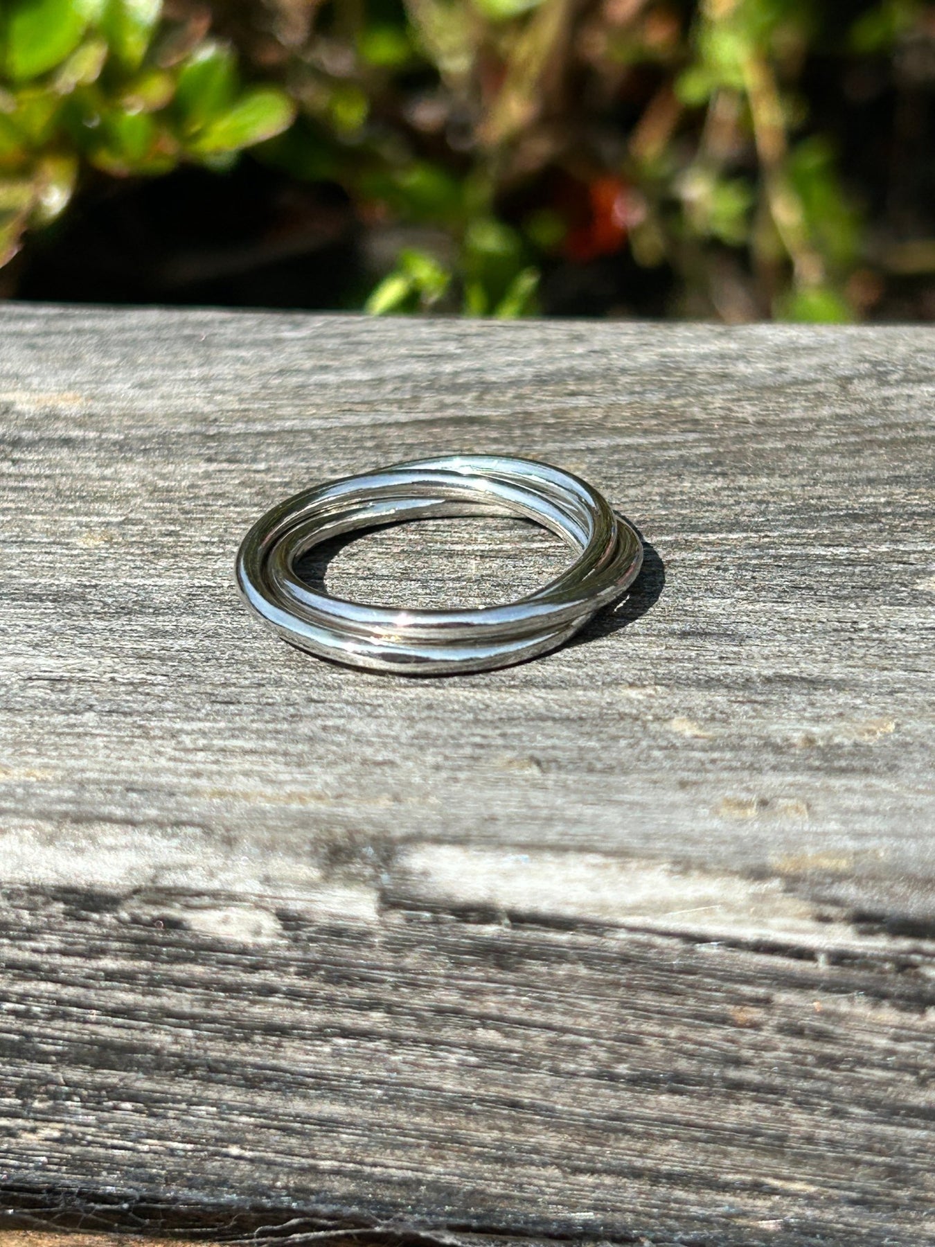 The three bands are permanently entwined and move independently of each other making it a perfect ring to fiddle with!