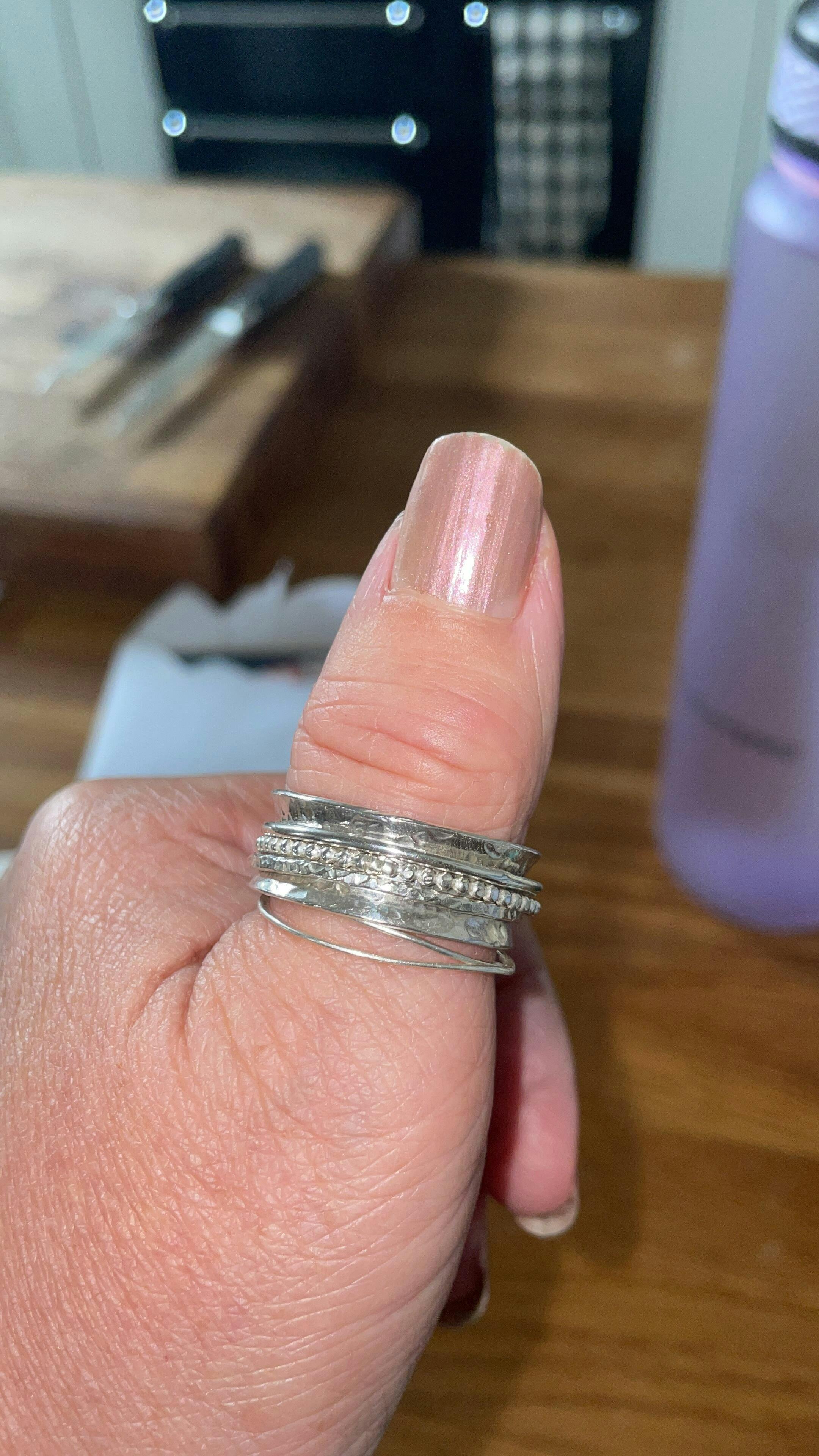 Handmade from 100% recycled Sterling Silver, every ring is made to order for a perfect fit. The motion of the individual spinning bands is calming and tactile, making it an ideal piece for anyone who likes to fidget, focus, or simply enjoy the gentle movement beneath their fingertips.